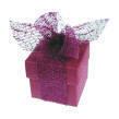 A spray of roses and ribbon encircled wit Almond ‘petals’ from